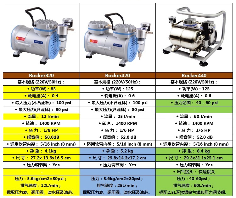 Rocker 320 無油式空壓機 AC110V,60Hz (AC220V, 50Hz)
